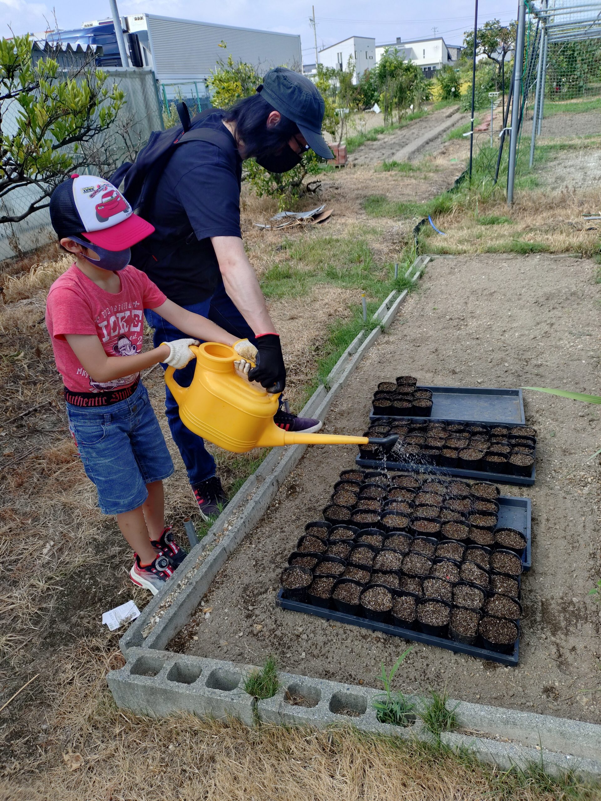 最後に水やりもして植え付け