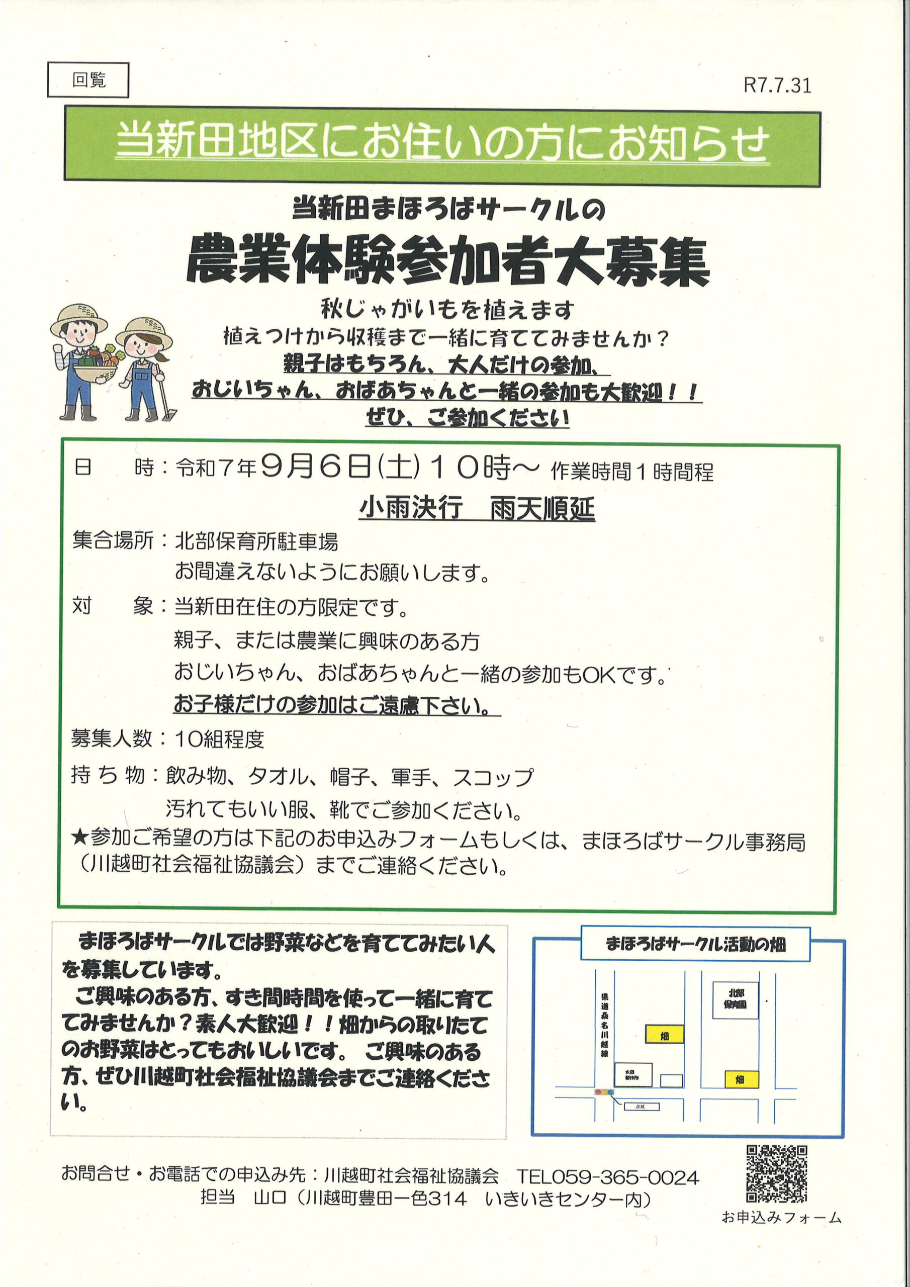 また、9月6日土曜日に農業体験を企画しました。