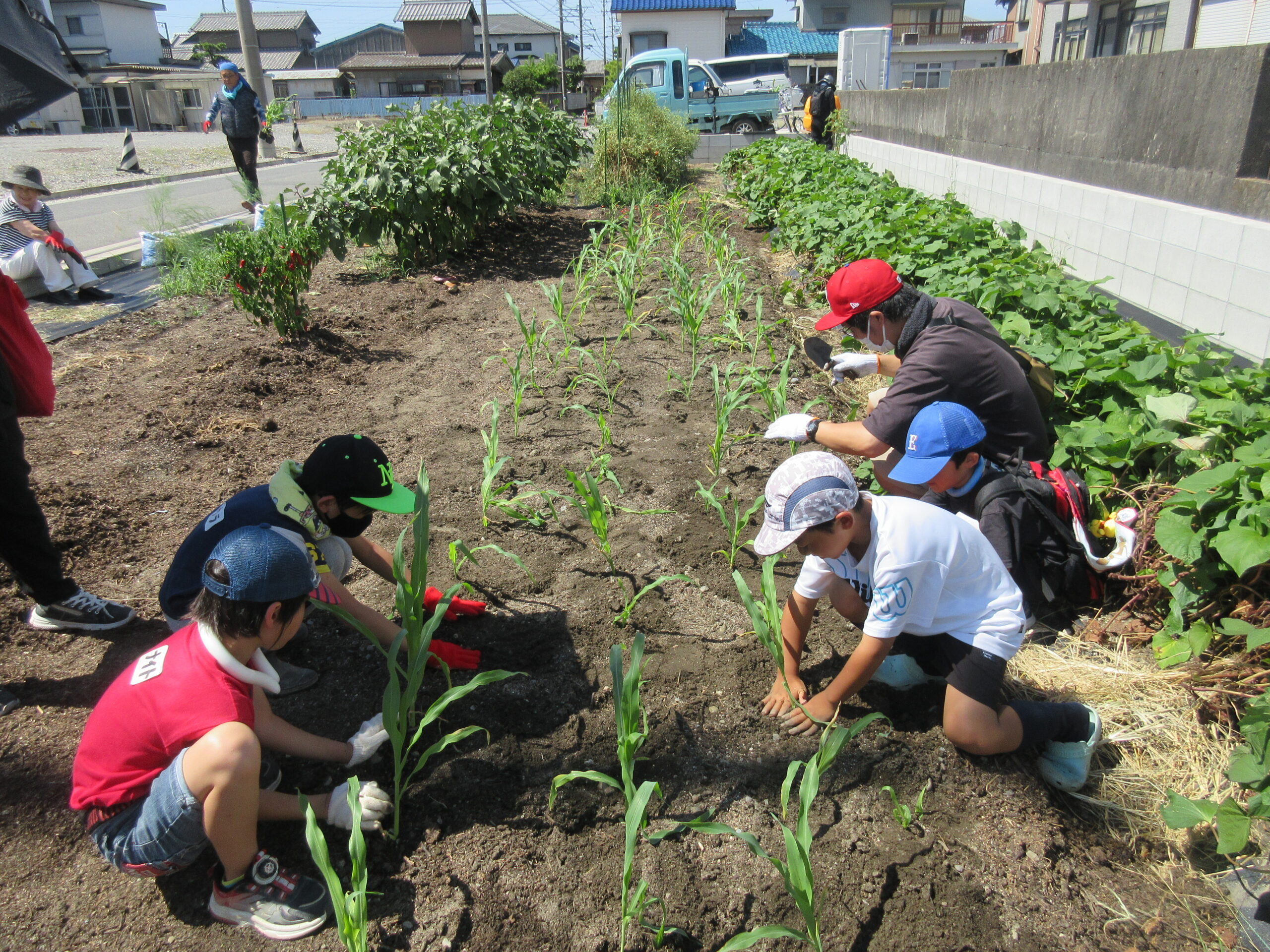 場所を移動し、とうもろこしの苗も植えました。