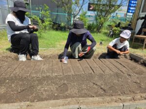 草を取り除いた畑にニンジンを植えました。ニンジンの種ってすっごく小さいですね(#^.^#)