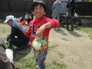 今日はお天気にも恵まれ皆さん大きそうな玉ねぎを選んで収穫していただきました。